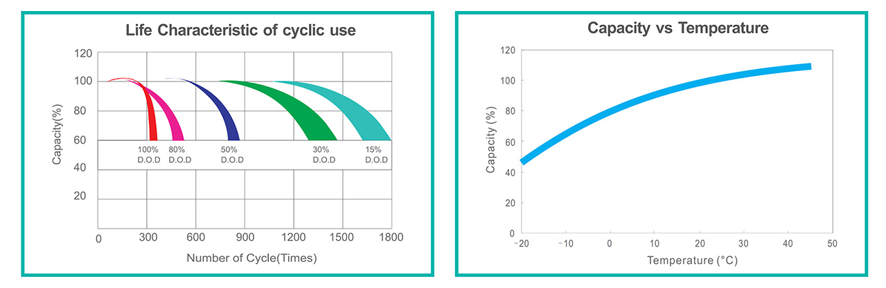 capacity from 7Ah to 260Ah. Battery cycle life is more than 400 cycles